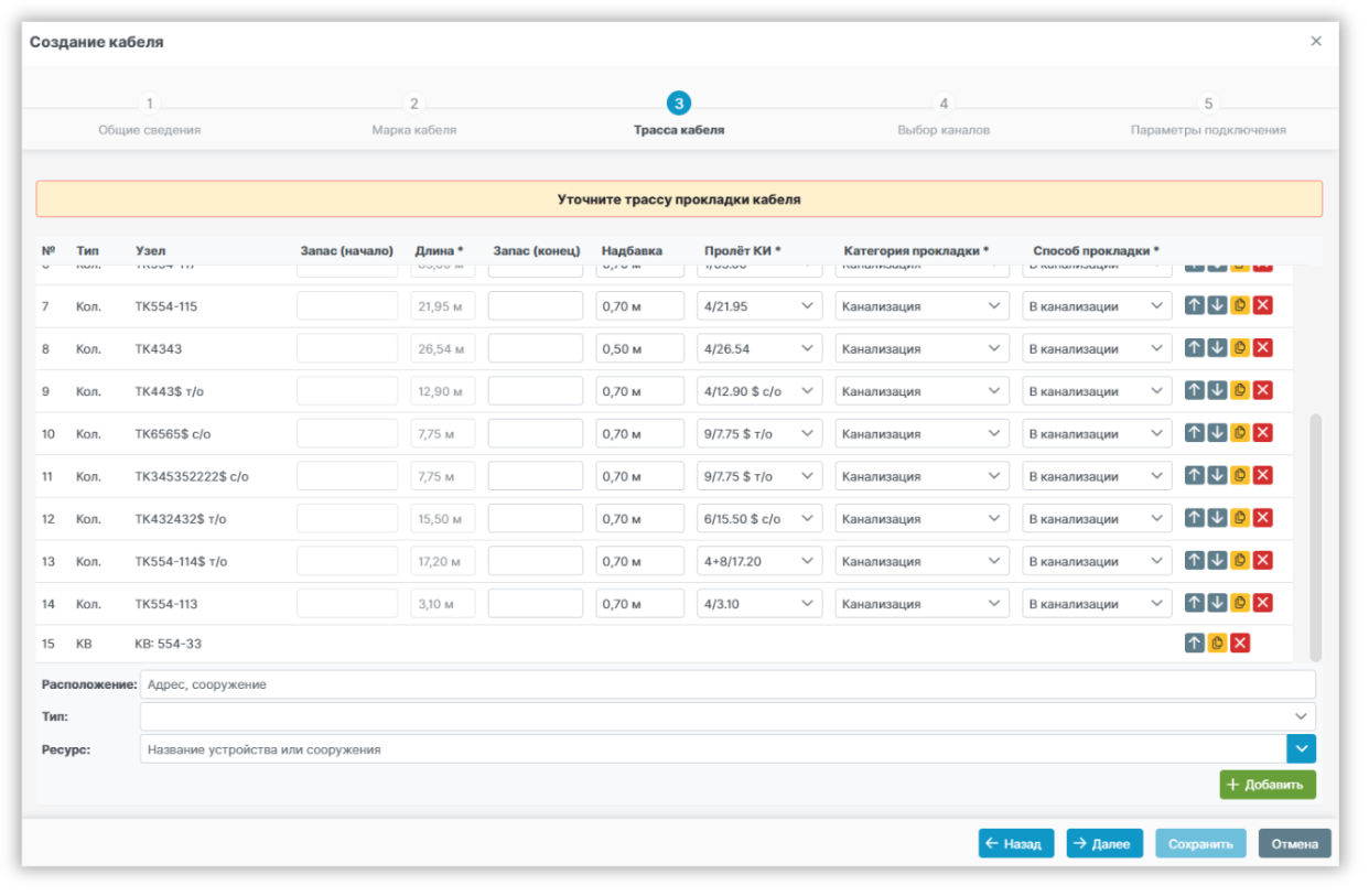 Теперь создание кабеля - это несколько кликов на карте и дружелюбный пошаговый интерфейс по внесению данных о нем с последующей автоматической генерацией схемы прокладки этого кабеля.