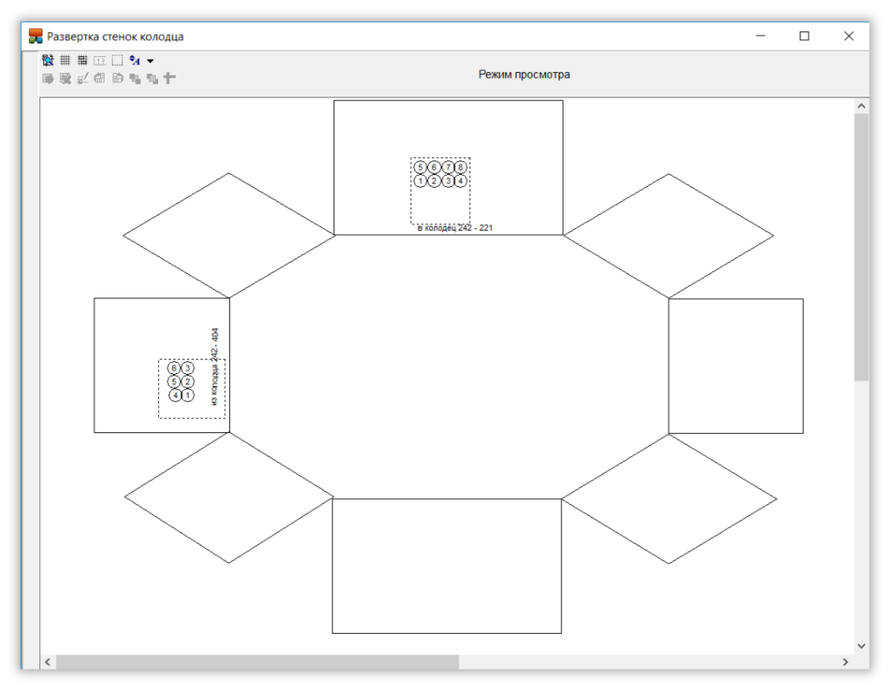 Изначально создание групп каналов и указание ориентации каналов внутри группы реализовывались по отдельности. Уточнение ориентации каналов занимало много времени, так как приходилось перемещать каждый канал на графической области развертки и самостоятельно поворачивать изображение сечения группы каналов в зависимости от стенки сооружения.