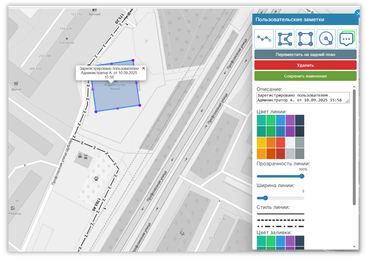- Доступны как текстовые пометки, так и рисование прямо по карте.